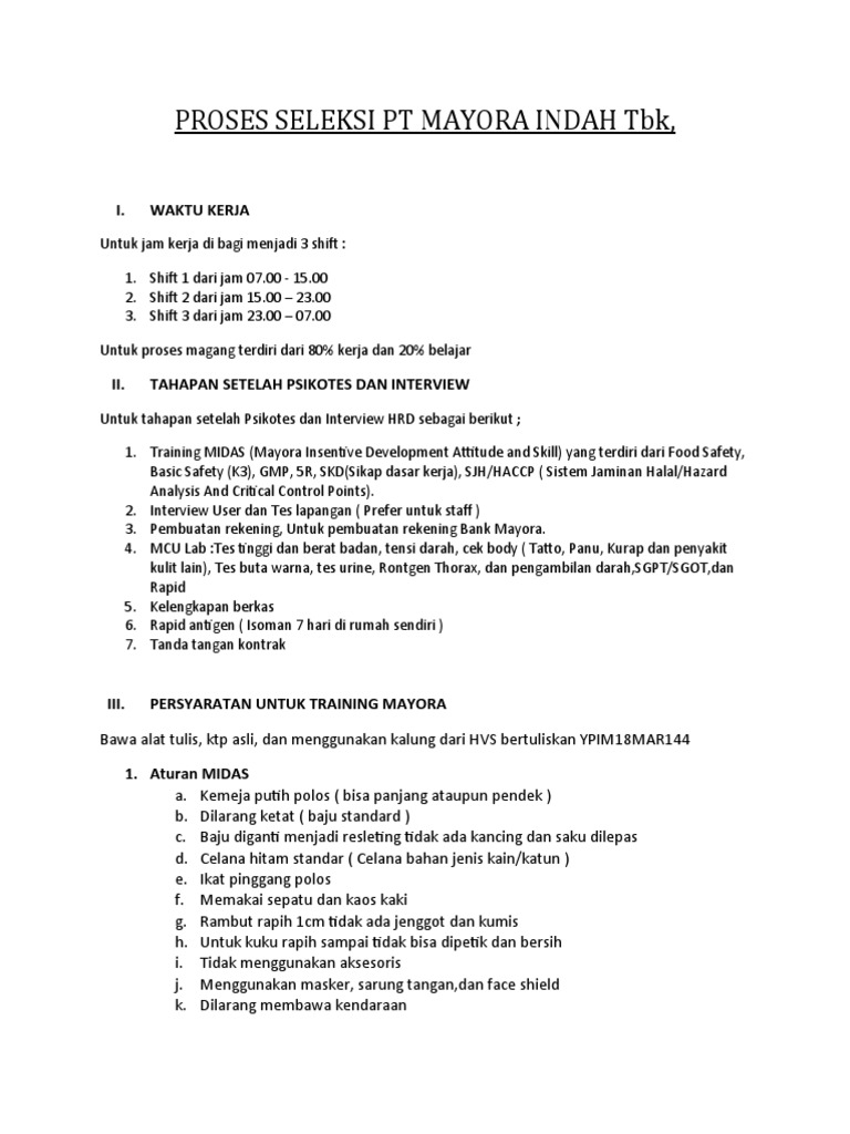 Proses Seleksi Pt Mayora Indah Tbk Pdf