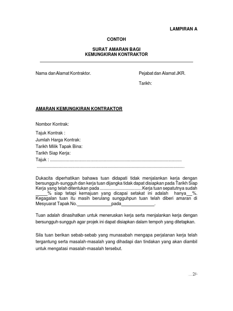 contoh surat amaran kepada kontraktor kondominium